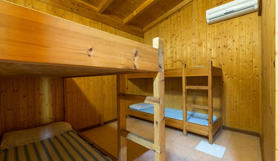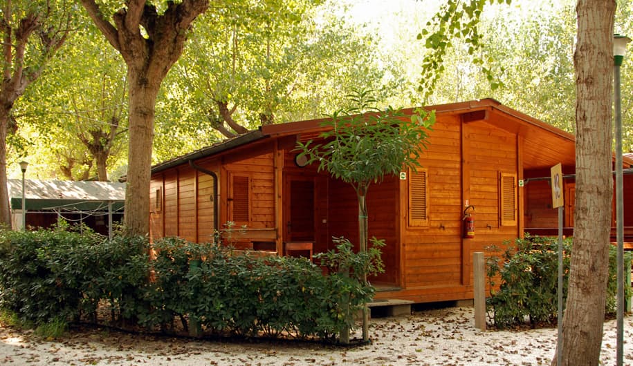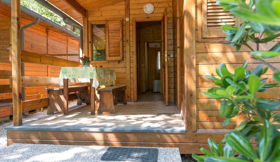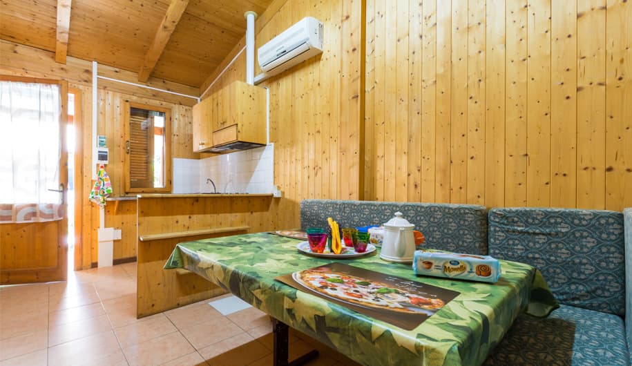 Gli chalet sono strutture bifamiliari in legno. Dispongono di aria condizionata/riscaldamento, presa TV, posto auto in parcheggio adiacente alla reception, dotazione semplice per la cucina, biancheria da letto e da bagno. Esternamente offrono una veranda con tavolo e panche.